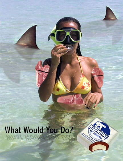 3. I wouldn’t go swimming in the ocean for a Klondike bar. Apparently there are sharks in the ocean. They’ve been all over the news the last few weeks. Sharks off the coast of Cape Cod. In the water? who’d a thunk it…..I would totally take a dip in a pool or freshwater lake for one though….Wait, was Jaws 4 set in someones swimming pool? Fuck it, can I take a bath for one?